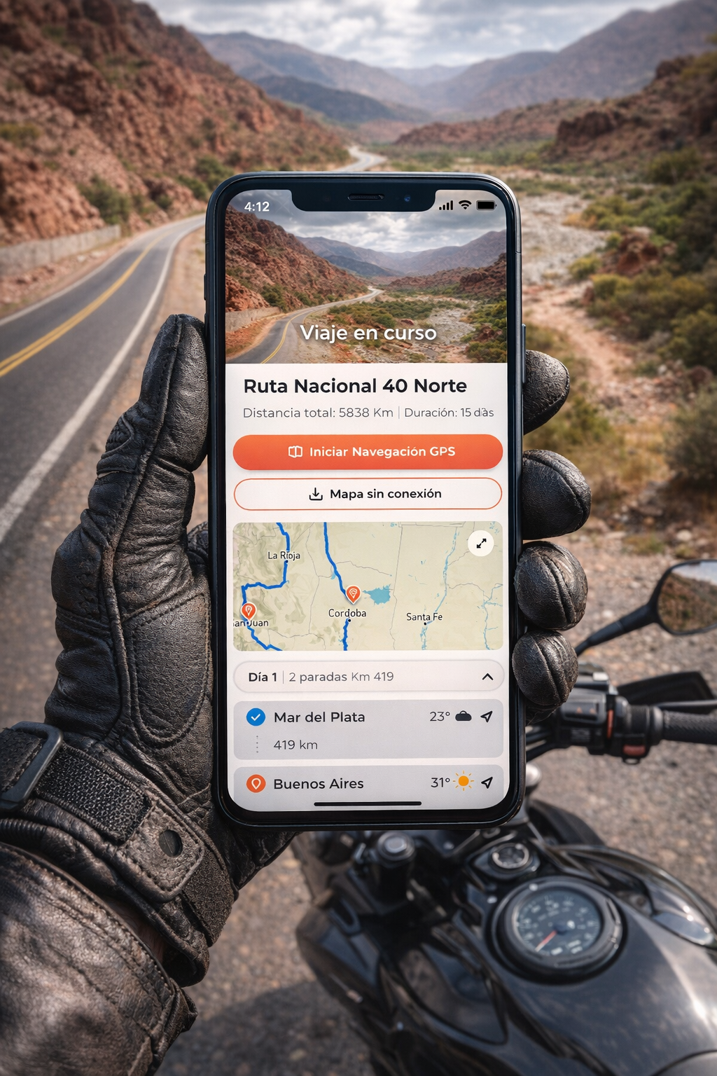 También integramos una red de servicios motoviajeros en múltiples países: estaciones de servicio, talleres, alojamientos, restaurantes y puntos de interés, todo curado por la comunidad. Porque sabemos que hay quienes viajan con destino... y quienes simplemente siguen la ruta.